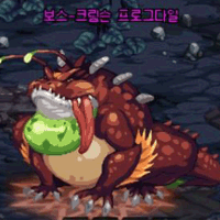 模式1:生成三个沼泽地带,射出珠子,被珠子攻击时产生沼泽。 (踩到沼泽的话会受到中毒伤害) 共同模式: 跳跃移动, 跳跃的地点产生攻击判定, 击退, 舌头鞭挞, 吞噬. |